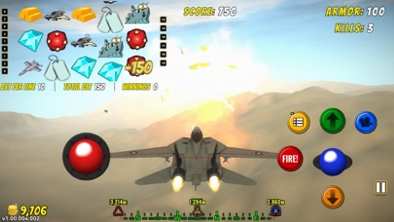 • With Tomcat Skill Slotz, the action keeps going and the slots keep spinning for as long as you can keep shooting down enemy fighter jets!