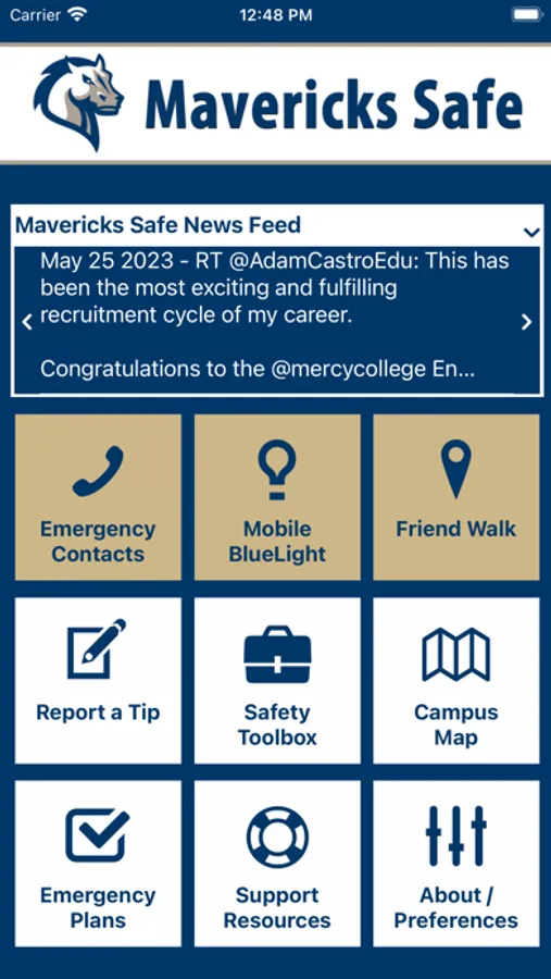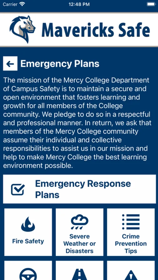 Mavericks Safe is the official safety app of Mercy University. It is the only app that integrates with Mercy University's safety and security systems. Campus Safety has worked to develop a unique app that provides students, faculty and staff with added safety on the Mercy University campus. The app will send you important safety alerts and provide instant access to campus safety resources.
