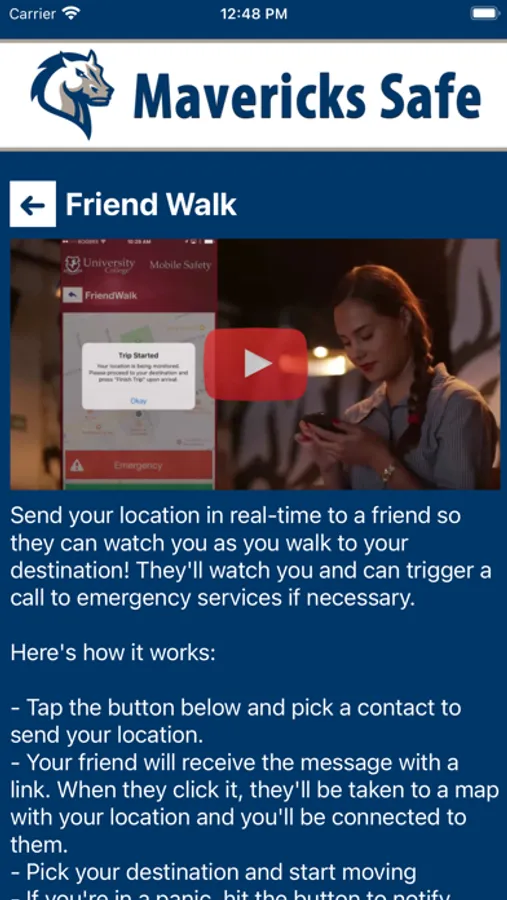 - Friend Walk: Send your location to a friend through email or SMS on your device. Once the friend accepts the Friend Walk request, the user picks their destination and their friend tracks their location in real time; they can keep an eye on them to make sure they make it safely to their destination.