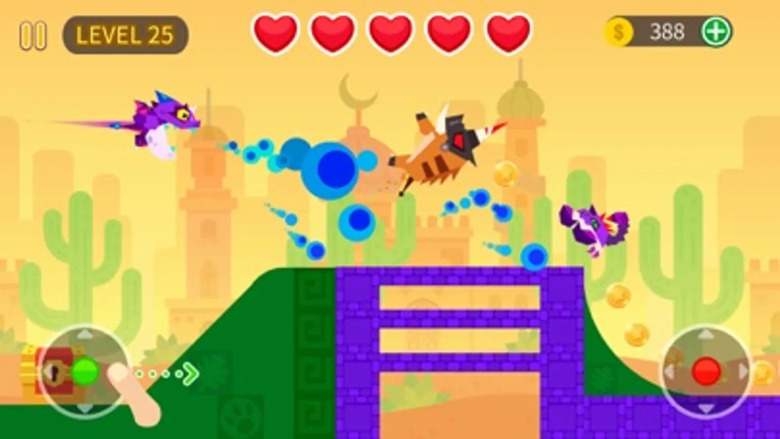-Control direction the dragon fly and rush to on the left. Control dragon to spit fire balls on right.