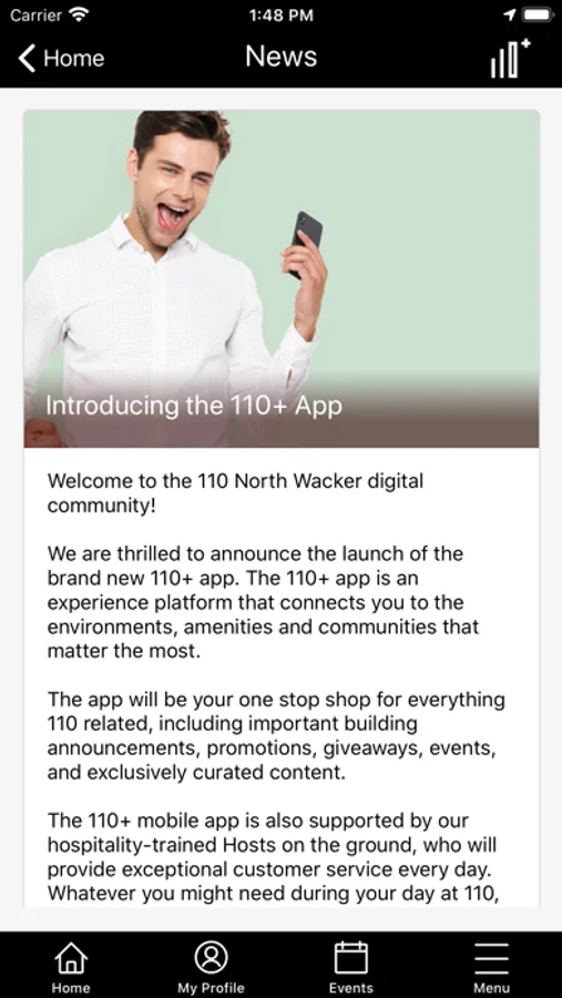 The 110 North Wacker application connects you to your workplace, giving you the personalized worklife experience you need to tackle your day and delight in doing it.