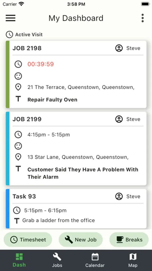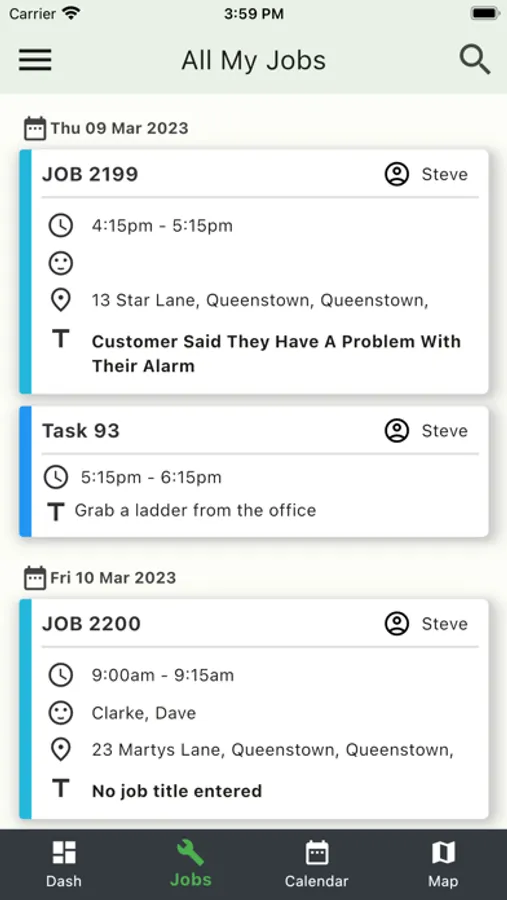 The Field Worker Apps also offer a variety of layouts including a LIST of jobs in order, a CALENDAR view or a MAP view allowing closest job selection. Your field workers, if allowed, can see pricing and are able to invoice from site, alternatively completed jobs return to your main account for checking and invoicing. Our Apps work seamlessly even offline and everything auto-syncs when the worker returns to coverage. Workers can also create new jobs in the field when required, capture customer signatures, add photos, fill in JSA’s, complete CoC’s, read attached manuals and much more. The details of equipment being installed onsite that are entered into jobs by your workers, feeds directly into the customers account for a permanent record for maintenance and warranty purposes. Time added on jobs is copied directly into our integrated timesheets along with the GPS times for comparison.