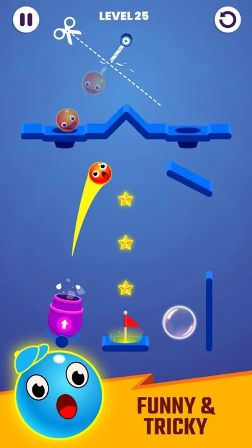 Cut rope and roll the ball to hole. Tricky rope puzzle will challenge your brain. Use your finger to cut rope, the ball will roll into the hole and change color the flag. Rope cut game is a gift bursting with fun, appeal and originality at each level.