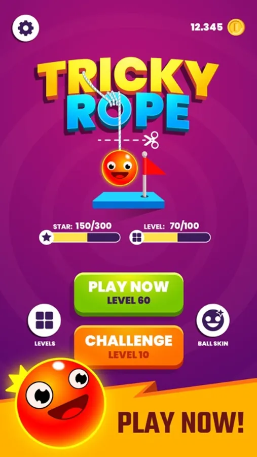 The goal of Tricky Rope is to get the ball to the finish line. Rescue the ball hanging on a rope, control the direction of the ball to complete the game levels.