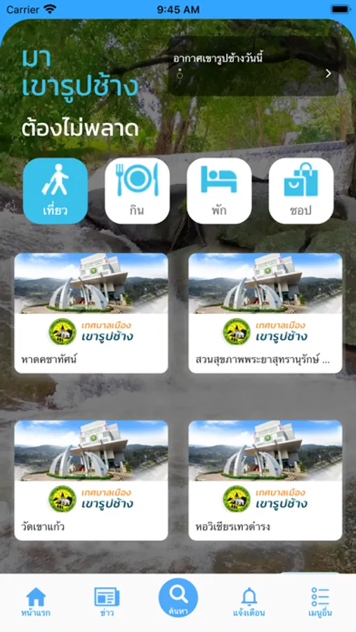 แอปพลิเคชัน แสดงข้อมูลเกี่ยวกับเทศบาลเมืองเขารูปช้าง มีเมนูให้ใช้งานมากมาย เช่น ข่าวสาร แจ้งเรื่องร้องเรียน เบอร์โทรสำคัญ ที่เที่ยว เป็นต้น