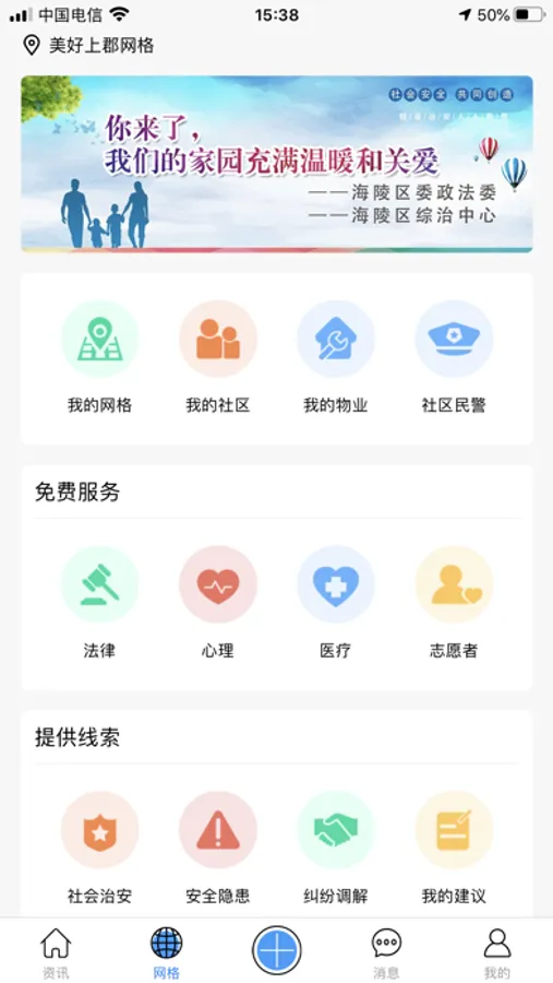 上级部门可以通过网格一键发布通告,更快捷、精准地将信息传达到每家每户;群众可以一键发布诉求、举报、建议、提供治安线索等。利用网格优势实现管理部门与百姓的零距离交流,更快更好地了解民意、体察民情、化解民忧。