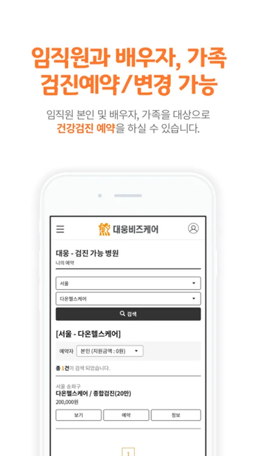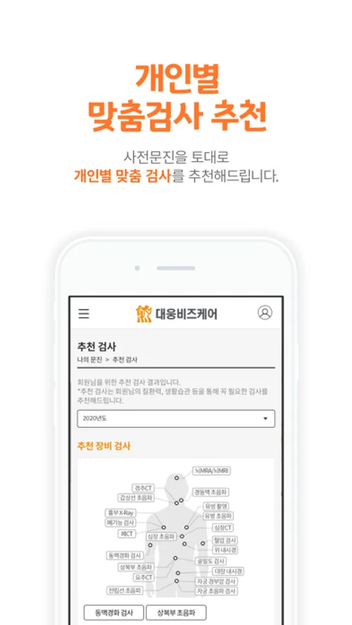 검진센터 예약은 물론 사전 검사추천이나 검진결과 확인, 사후 건강관리를 하실 수 있습니다.