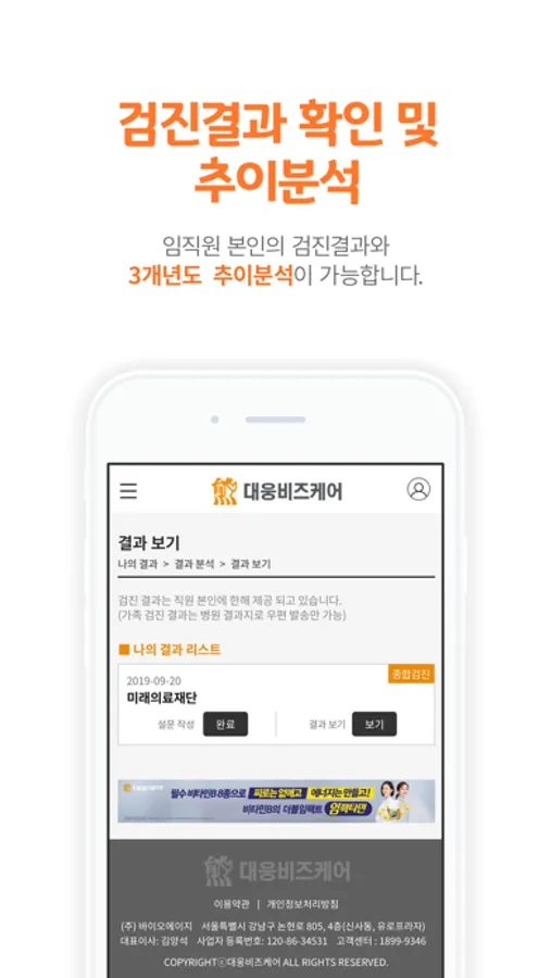 대웅제약 건강검진 대상자임에도 로그인이 안되는 경우 비즈케어 고객센터(1899-9346)로 문의 부탁드립니다.