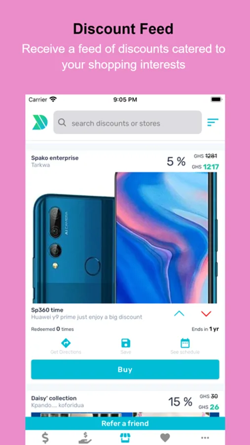 You receive a personalized feed of discounts curated to fit your shopping habits.
