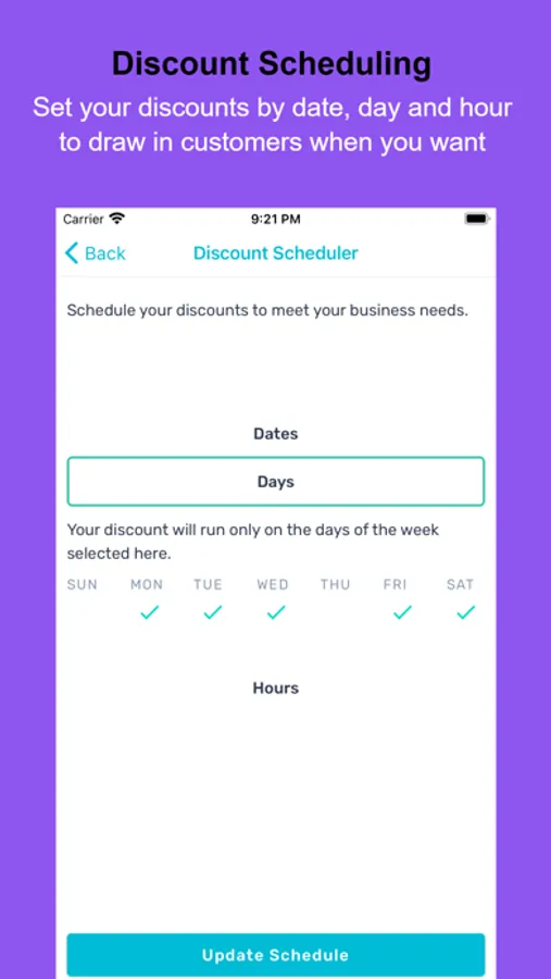 Drich gives you full control of your discounts: you can schedule and set redeem limits on the discounts. In addition, Drich provides tools for you to engage with your customers.