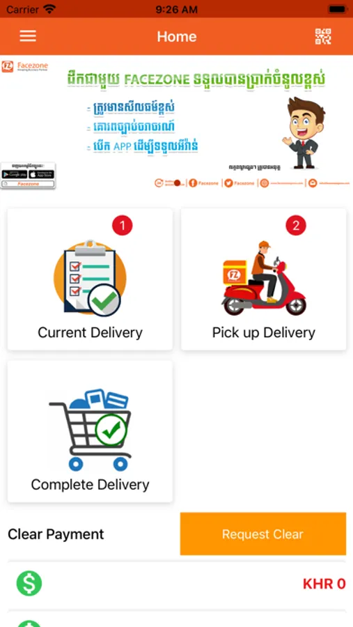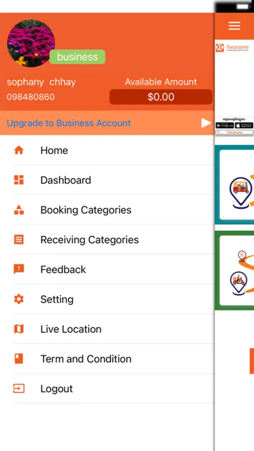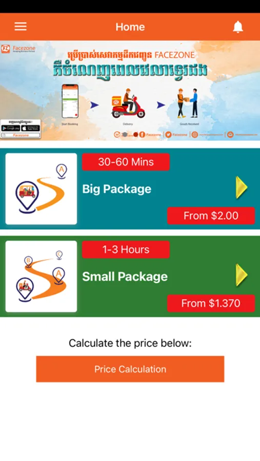 Facezone is the first delivery platform which provide the fastest service and reliable control system in Cambodia. Our app services provide as following:
