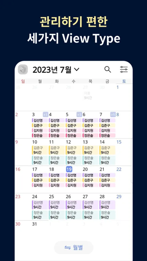 [근무스케줄]하나의 캘린더에서 직원과 근무스케줄을 공유해요.