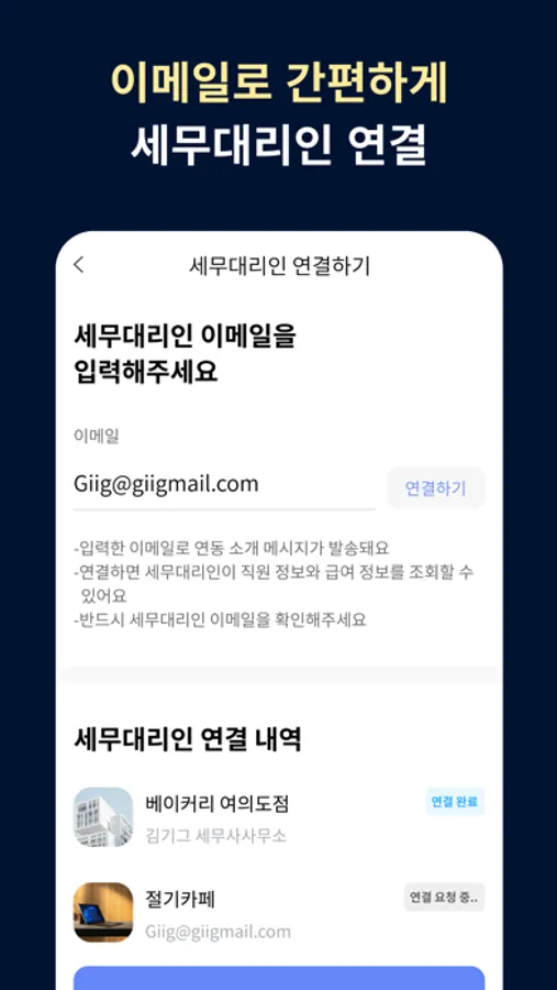 [세무대리인 연결]세무대리인과 연결하여 세무 자료를 쉽게 공유해요.