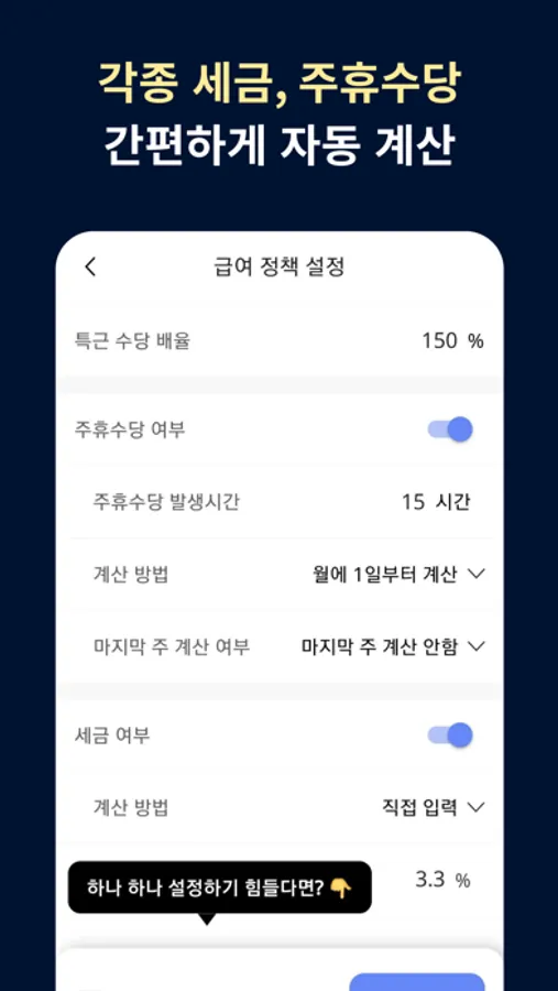 [각종수당]주휴수당, 야근수당, 특근수당, 연장수당을 쉽게 관리해요.