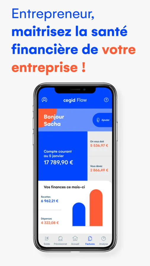 Cegid Flow est l'application pour piloter au fil de l’eau et sans effort la situation financière de l'entreprise :