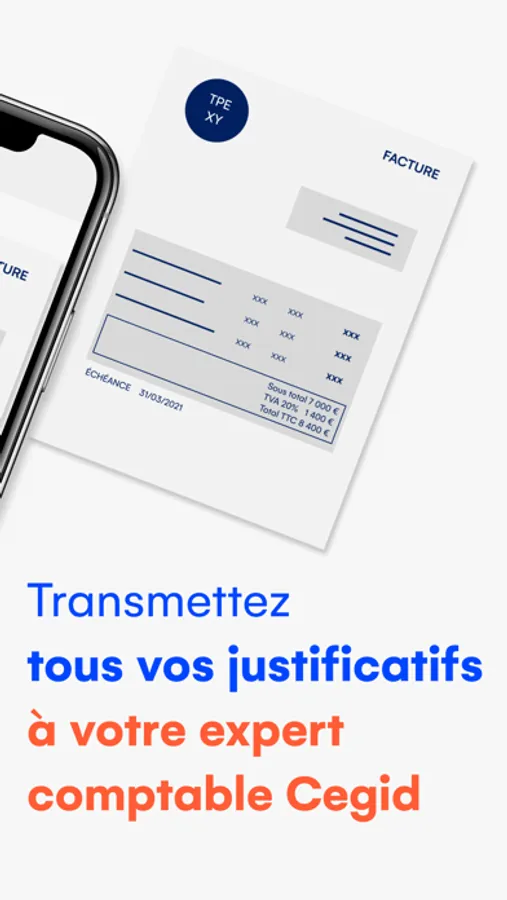 Cegid Flow transmet vos factures en toute sécurité à votre expert-comptable. Traitées automatiquement par son outil comptable, vous retrouvez quasi instantanément dans l’application les numéros de factures, leurs échéances de paiement, leur montant HT/TVA et êtes informés dès qu’elles sont payées ou en retard de paiement.
