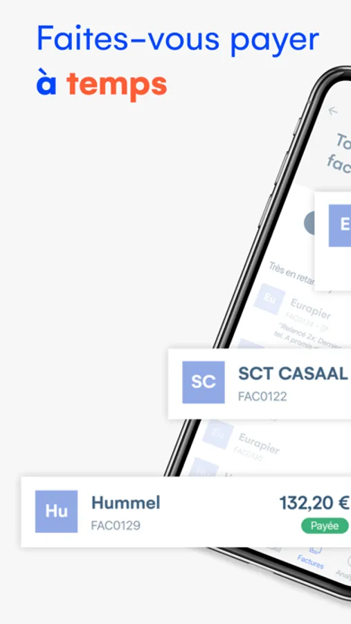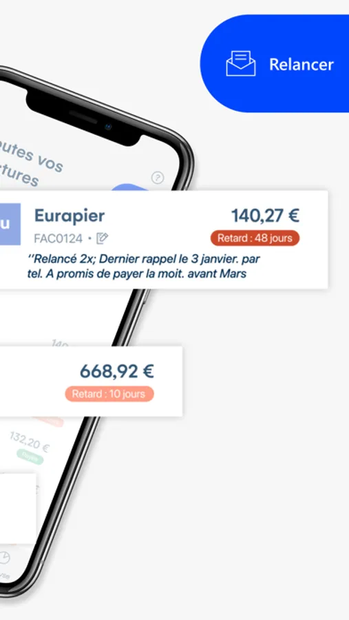 Vous relancez vos clients pour vous faire payer plus vite. Et bientôt, vous payez vos fournisseurs depuis l’application et proposez à vos clients de vous payer depuis un simple bouton de paiement inclus dans vos relances. C’est simple !