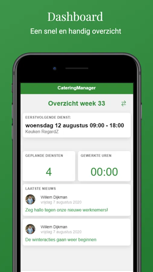 De CateringManager app geeft je toegang tot alle informatie die je nodig hebt om je functie goed en volledig uit te voeren. Het dashboard geeft je bij binnenkomst direct alle belangrijke informatie die je nodig hebt. En dat met een nieuw en fris uiterlijk.