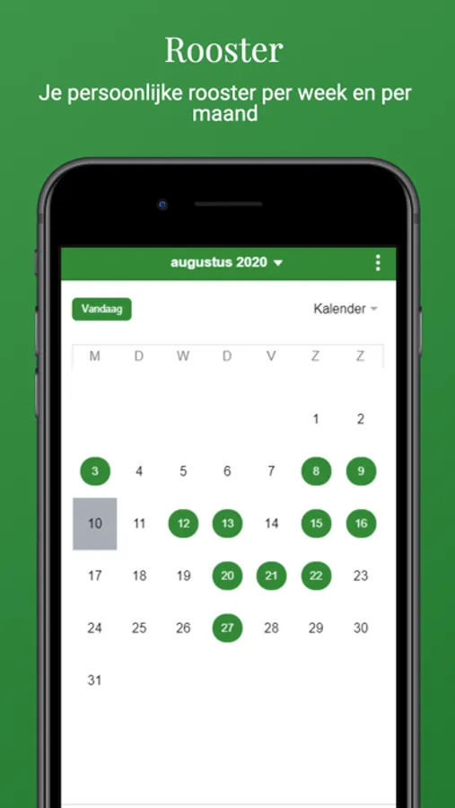 - Je rooster inzien per week of per maand en deze downloaden naar je eigen agenda!