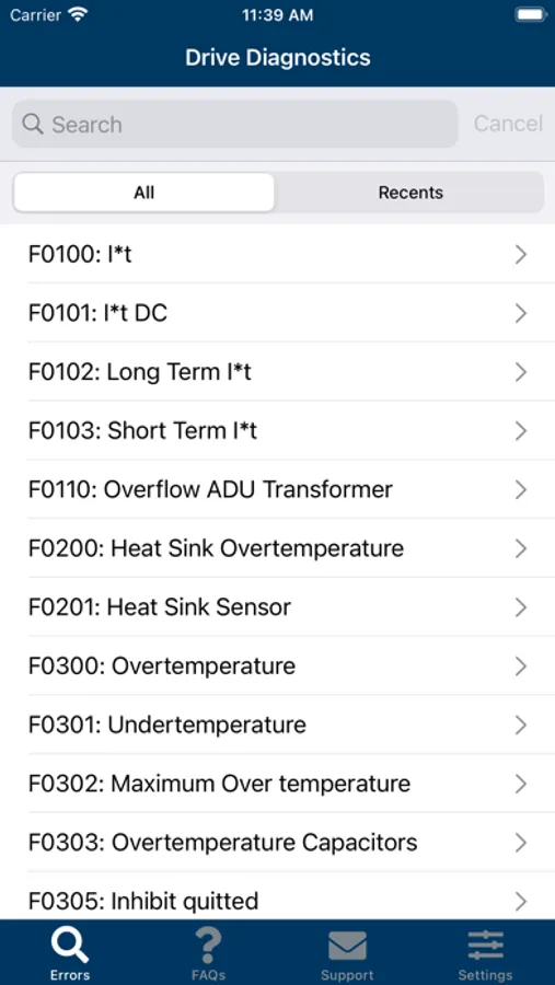 Check this app! You can easily look for fault codes of supported Bonfiglioli frequency inverters series: