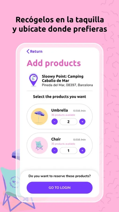 Descárgate nuestra app, busca tu Sloow Point más cercano en el mapa, y una vez que estés en él podrás reservar tantas sillas y sombrillas como quieras, ¡es muy fácil!