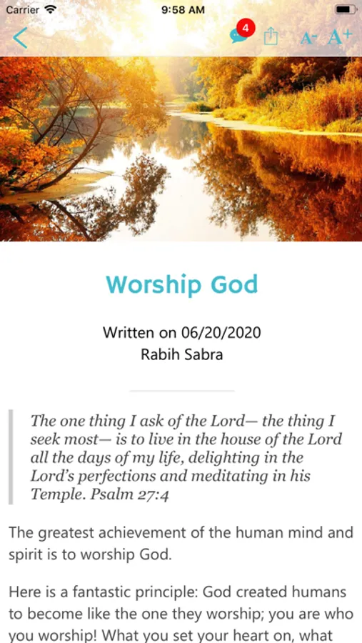 Worship App organizes Bible verses on the essence, character, and names of God. This app gives worshippers of Jesus Christ easy access verses of worship. Users can also share insights and submit articles to be considered for publication on the app.