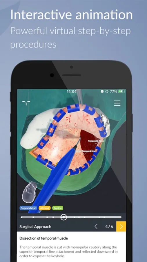 Craniotomies is a powerful tool for 3D mental skill augmentation with a particular focus on neurosurgical approaches. This module, available in a light and a full version, is designed as a virtual simulation sequence of mental training steps: Planning, positioning, step-by-step approach, microscope, closure.
