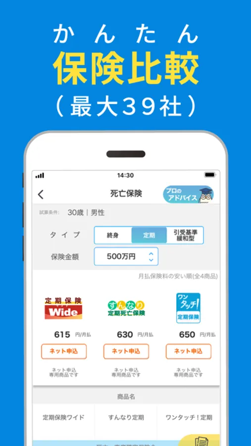 保険商品ごとの保障条件の違いを簡単に比較可能。あなたにとって一番条件の良い商品を見つけることができます。