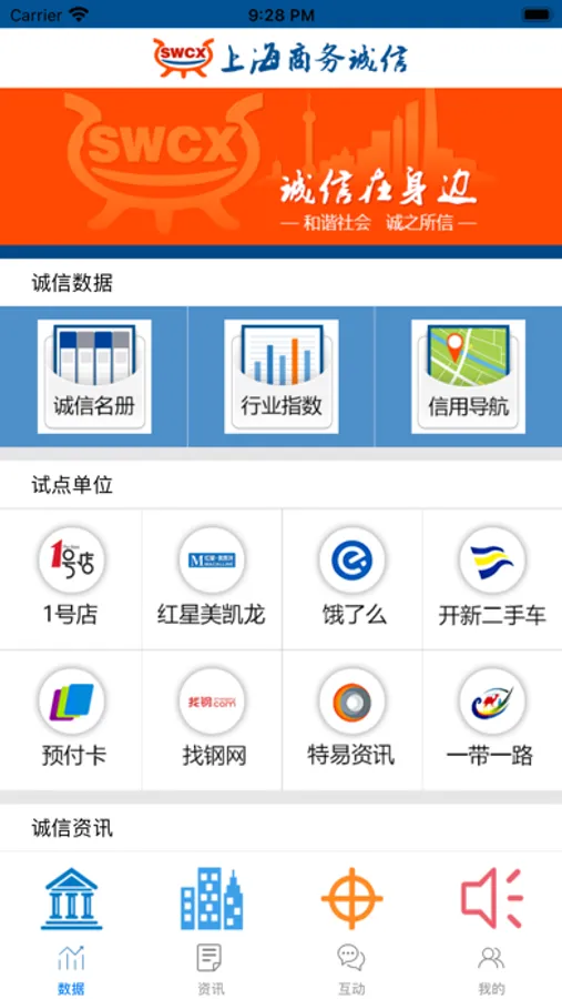 诚信名册、行业指数、信用导航、试点单位、诚信资讯
