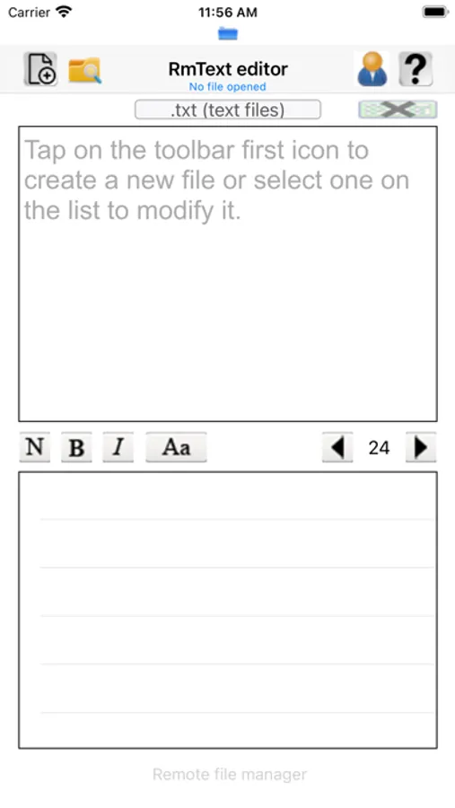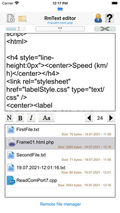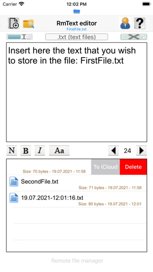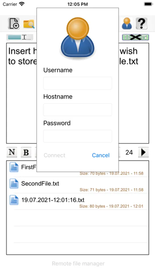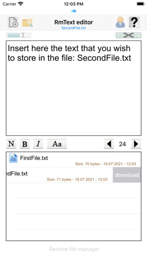 This compact tool is very useful, and practical, to manage, on local device filesystem, text files, by means a user friend graphical interface. Its principal feature is that to allows text files exchange between mobile device and any connected Linux server, for example a Raspberry, via a file transfer protocol.