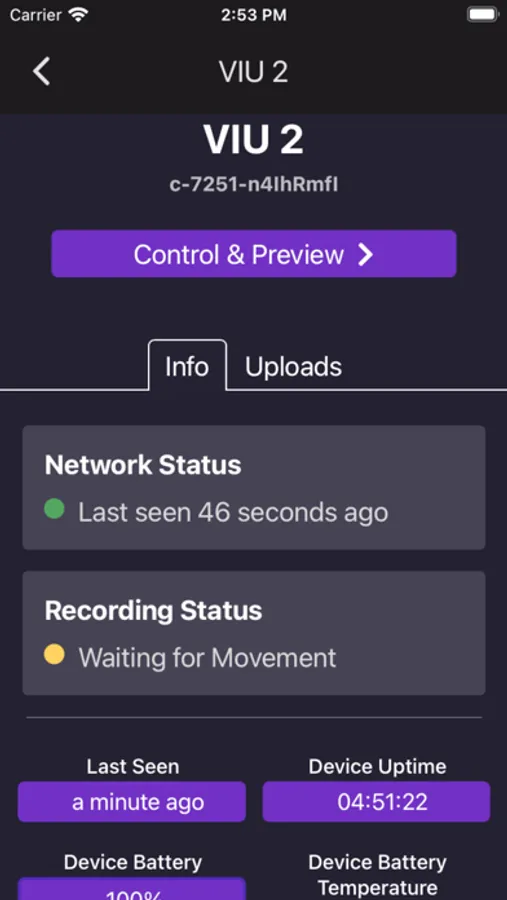 Control recording settings, trigger an upload and monitor the location of your device all within the app.