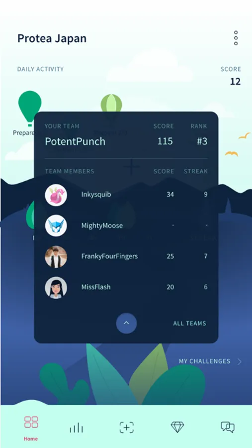 Fun, team-based challenges provide social interaction and leverage peer-support to maximise participation. Gamification elements based on behavioural science use intrinsic and extrinsic drivers to optimise motivation and build healthy habits.