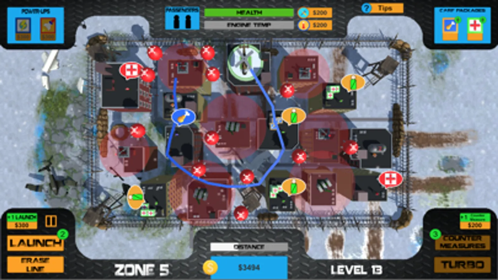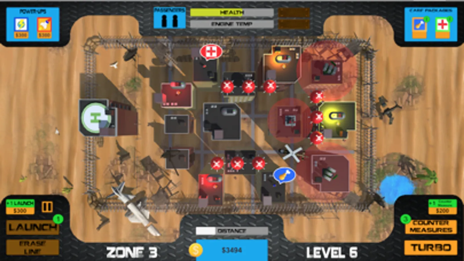 War Support is a puzzle game where players plan out flights for a helicopter to service refugees in various war zones. Filled with different environments of enemies set to destroy the helicopter on its journey, players must think critically about which paths to take, the order of refugees saved and serviced, and how to avoid taking damage. Armed with various boosts to help get the pilot through each zone safely, players will try different methods to clear each area of those in need, and save refugees within their fallen cities!