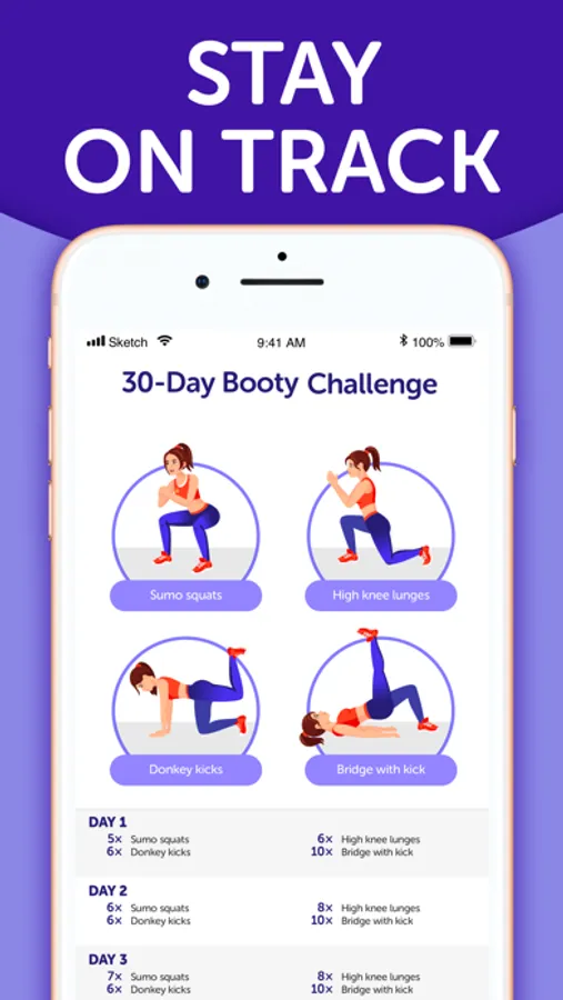 Our challenge is specifically designed to firm, tone, and boost your booty into shape in just 30 days. BootyQueen app will be your virtual trainer and help you target major muscle groups in the lower body from every angle and improve muscle growth and symmetry. It’s so much fun you’ll forget your working your butt off!