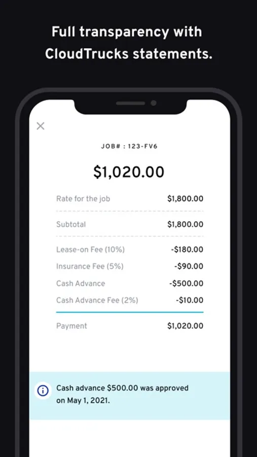 The CloudTrucks app helps truck drivers put more money in their hands, faster and with fewer headaches. Our app features include: