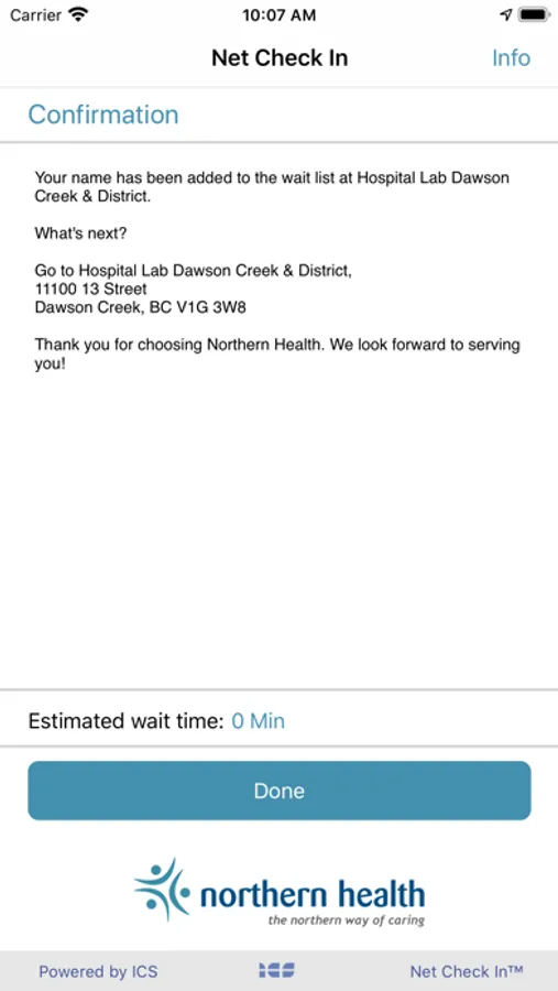 Visiting Northern Health is now easier than ever. Let your name wait for you, while you do more important things. Northern Health utilizes ICS Net Check In™ to allow you to check in for a service using your phone, iPad or via the web.