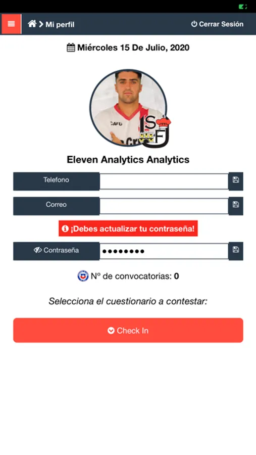 App móvil que permite ingresar al portal de jugadores(as) de San Felipe.