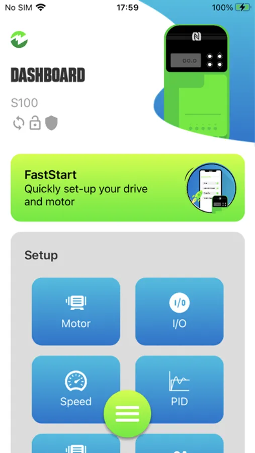 • Quick visualisation of I/O, motor, and speed settings