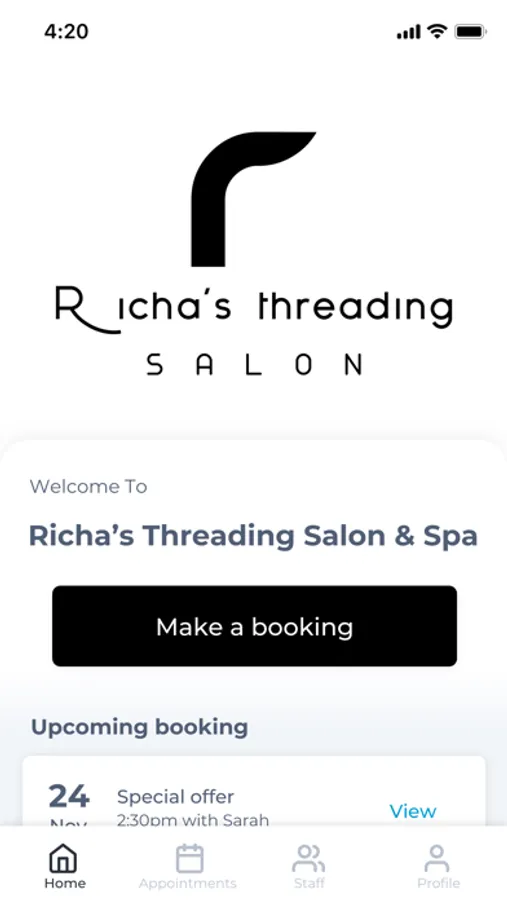 The Richa’s Threading Salon & Spa app makes booking your appointments and managing your loyalty points even easier. You're just a few taps away from feeling good and looking great!