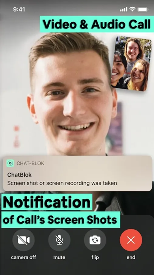 * VIDEO & AUDIO CALL: One to one + be NOTIFIED for screenshots & screen recordings