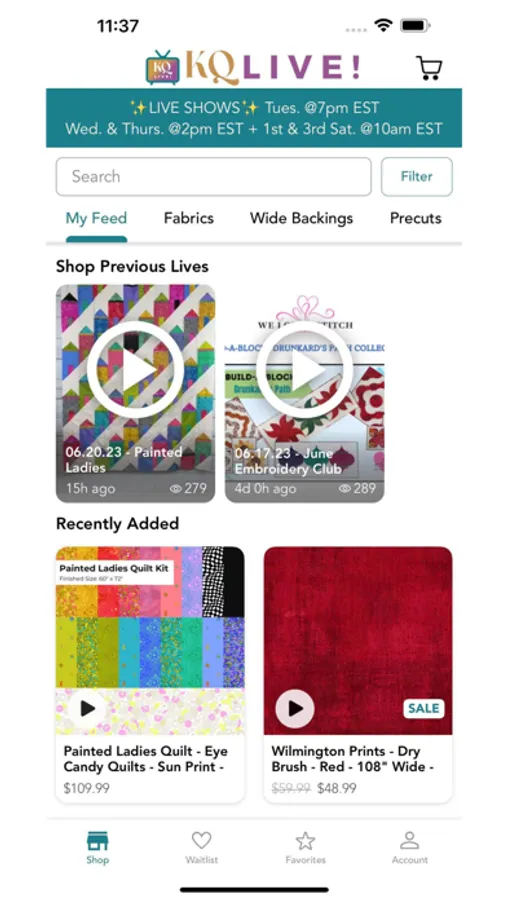 You might see kits, fabric, notions, rulers, demos, field trips, trunk shows and sew much more when you tune into KQ Live!