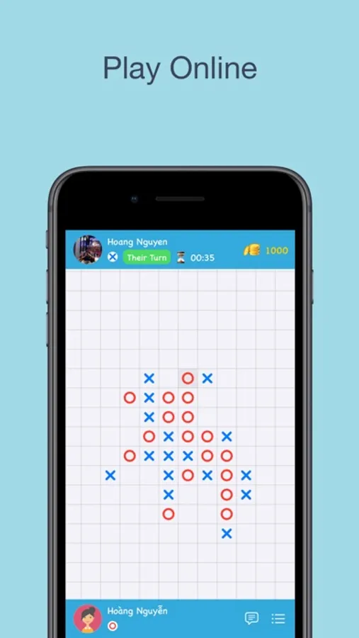 Each player uses an X or O letter, which are Caro pieces. The players will in turn fill the grid with their letter. The winner is the person who gets 5 in a row (horizontal, vertical or diagonal) first.