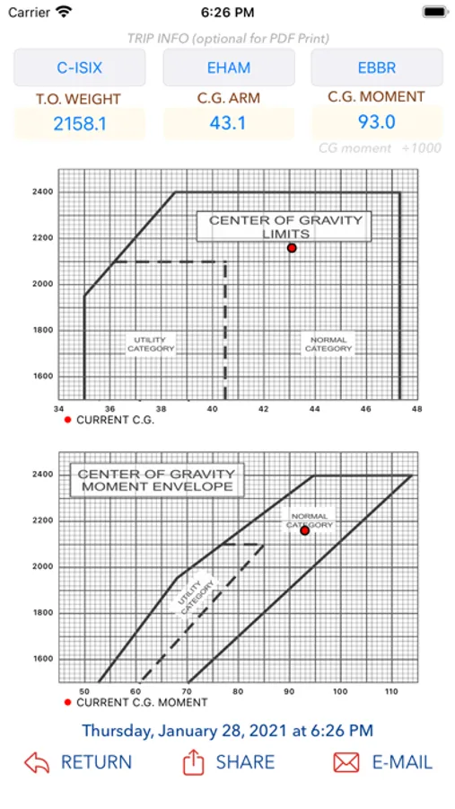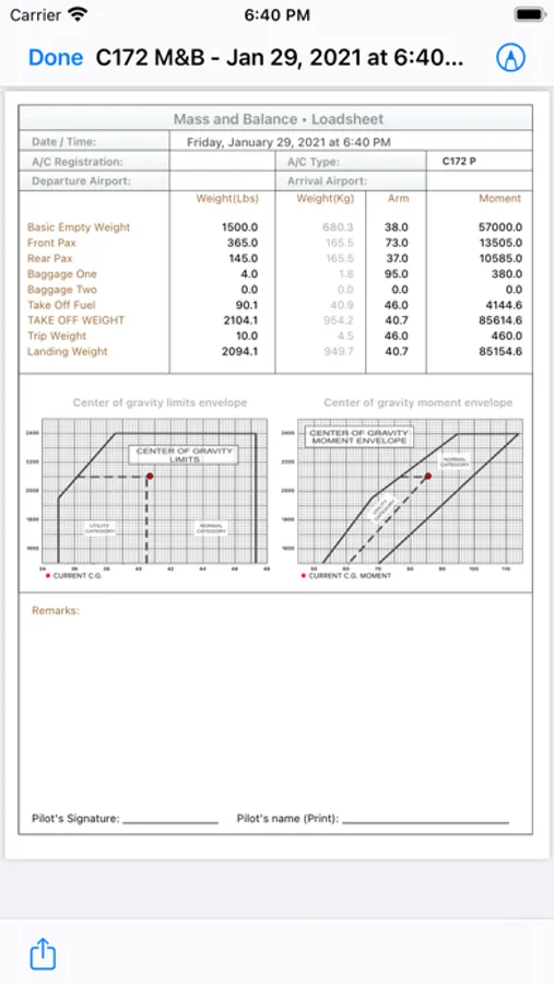 Create your PDF file with your loadsheet in a professional looking sheet, save it, print it, share it or e-mail it! Includes regulatory data such as A/C registration, departure aerodrome, arrival aerodrome, time and date.