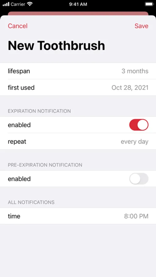 Just input date of first use and forget about it. The app will notify you when the toothbrush should be replaced and will keep bothering you until you do so. The app will make it very hard to use the brush longer than you should.