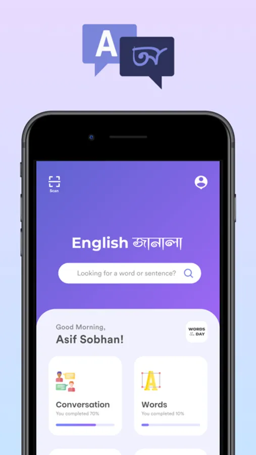 You can run the whole app offline and even if you don't have Bangla keyboard installed, you can search through phonetic search. In this app, we have tried to bring the words or sentences used in our daily life. We have divided the app into 4 major parts.