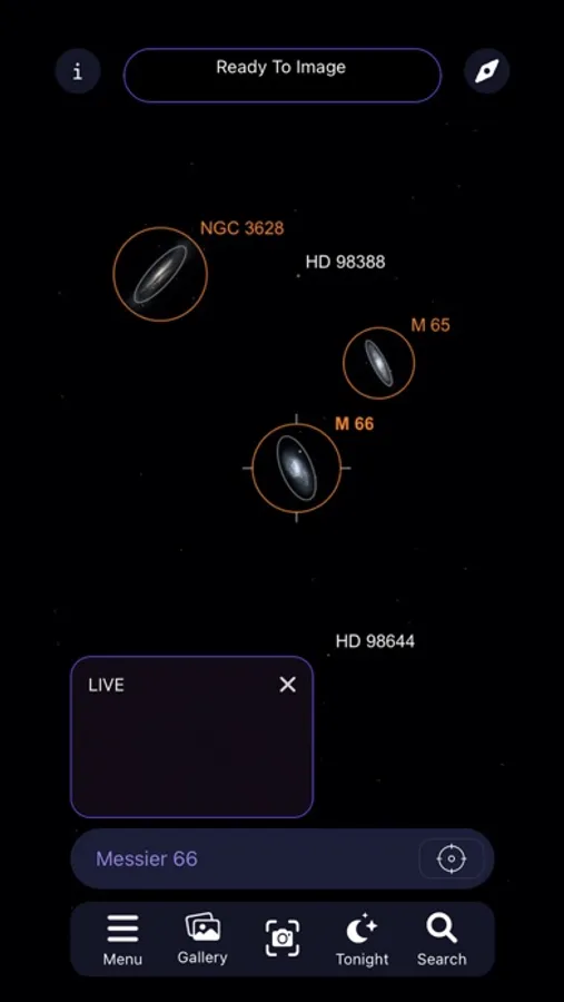 Use the Tonight icon to see a list of the best currently visible objects. You can also search for objects by name or designation with the Search icon.