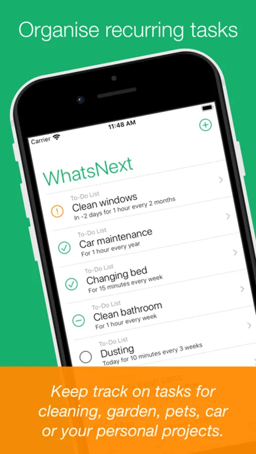 Helps with organizing mundane recurring tasks. Get notifications when tasks are due and share task lists with others to cooperate. Don’t have the time? Just ignore or postpone the task for later.