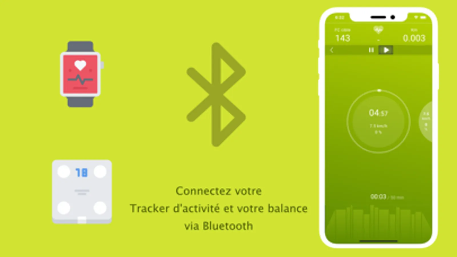 - se connecte en Bluetooth à des balances connectés compatible pour un suivi complet du poids.