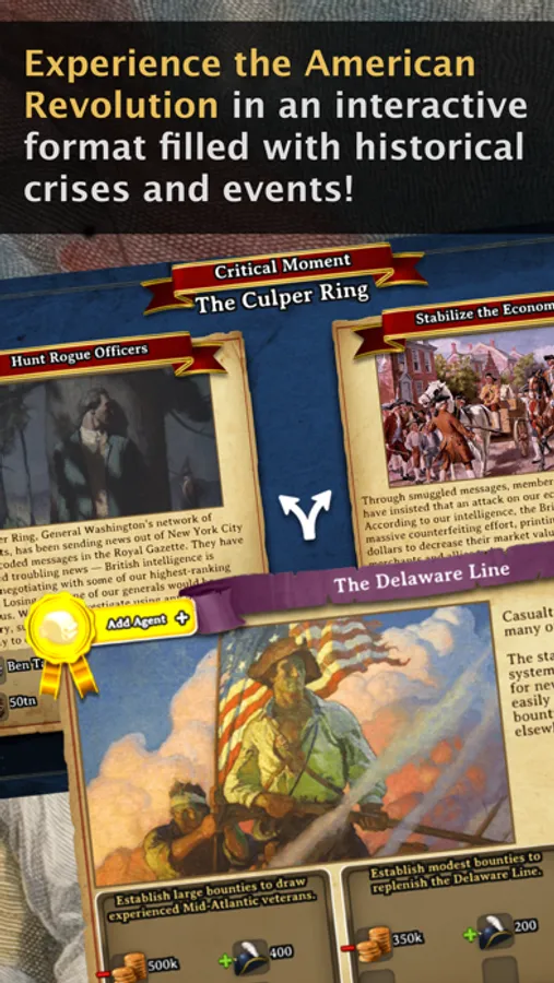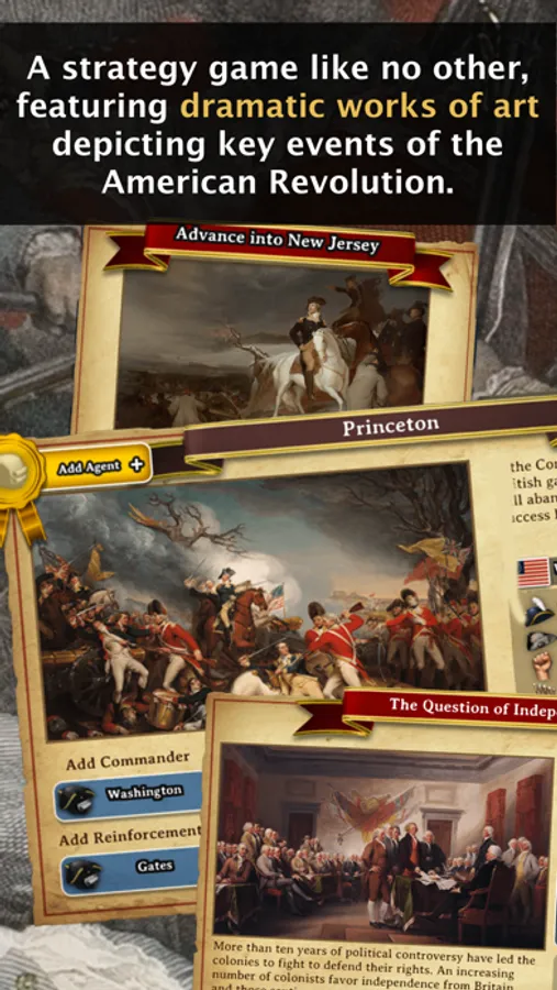 * Navigate over 150 historic events and dilemmas faced during the Revolutionary War, illustrated using more than 200 images—some of which spring to life to recognize critical moments in the course of gameplay.