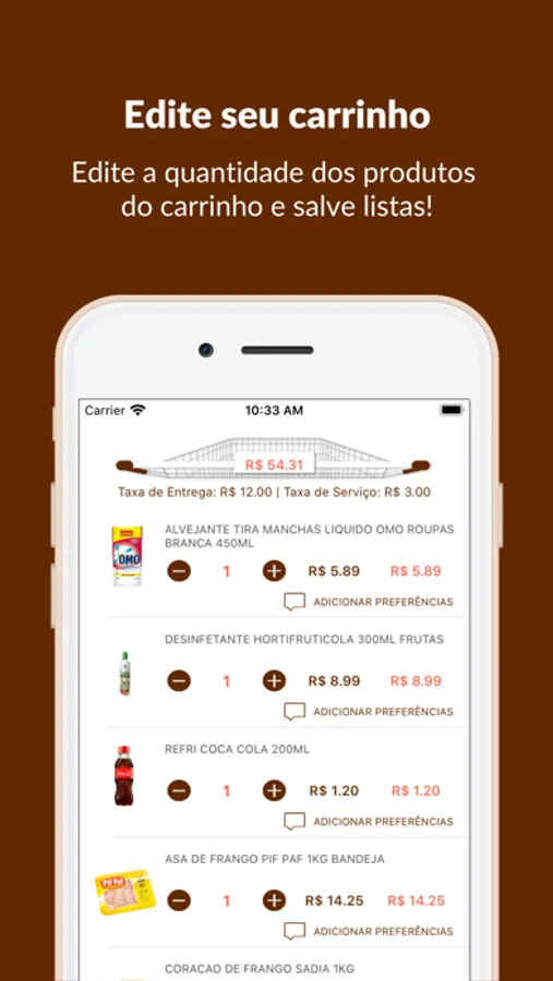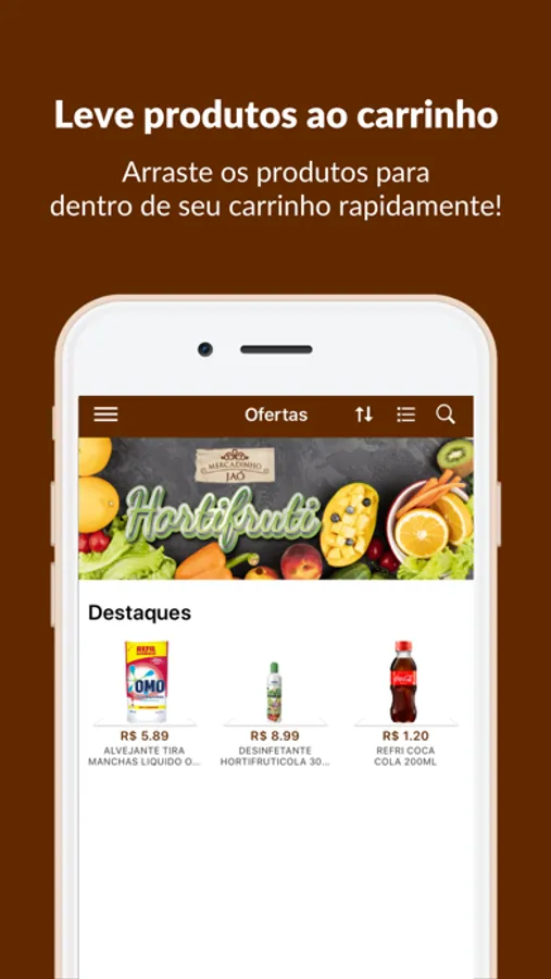 • Adicionar produtos no seu carrinho com um simples tocar e arrastar.